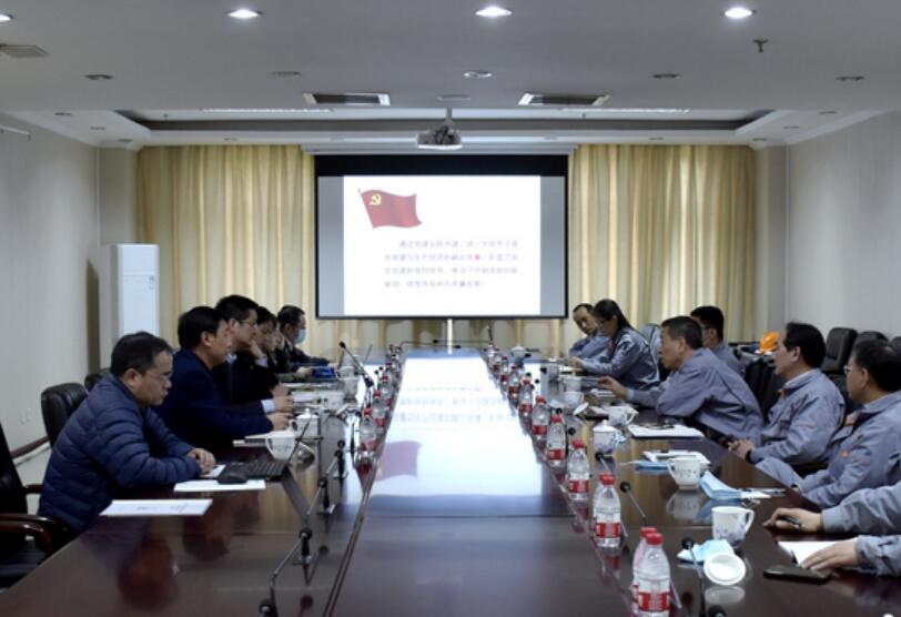 之后,在前往高鋁分廠、硅質材料成品庫房、鎂質分廠、賽隆分廠進行現場交流后,雙方針對2019年4月以來黨建共建和業務合作等工作的進展情況進行了座談。